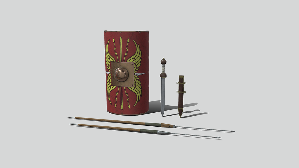 Gladius, Scabbard, Scutum, Pilum Medium, Pilum Long, VR-Ready.