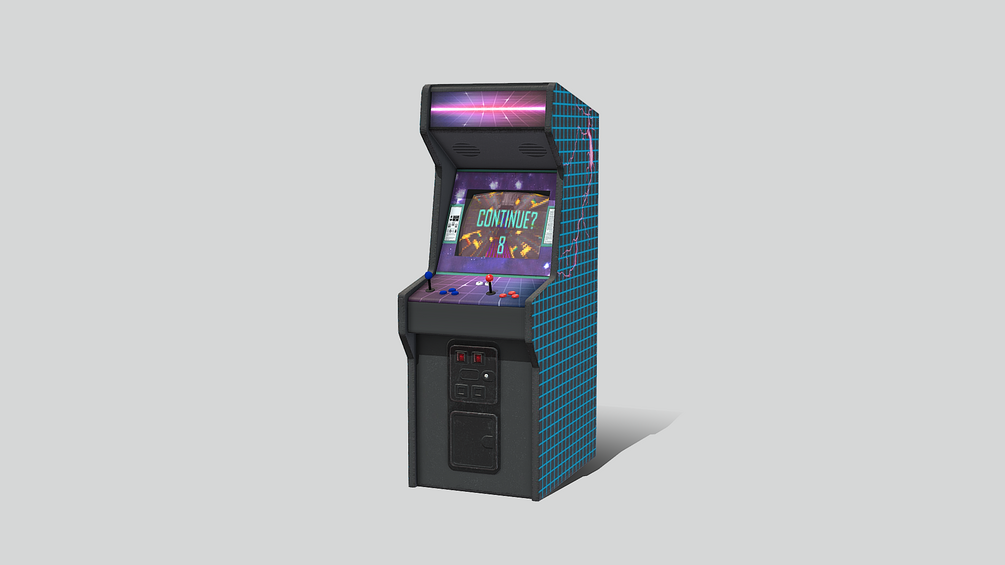 Arcade Cabinet with unique Materials, Textures, Decals and Graphics meant for AAA, Educational & Independent Game Development & Simulation Projects. Controls (Joysticks, Buttons) are separate meshes ready for Rigging & Animation.